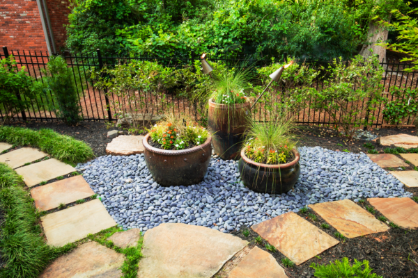 - Flagstone and gravel walkways for easy navigation.