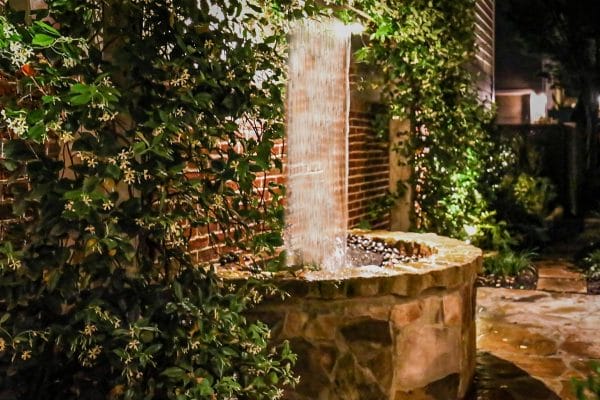 Lighting brings water features to life after sunset. Whether subtly glowing or dramatically lit, the interplay of light and water adds mystery and beauty.
